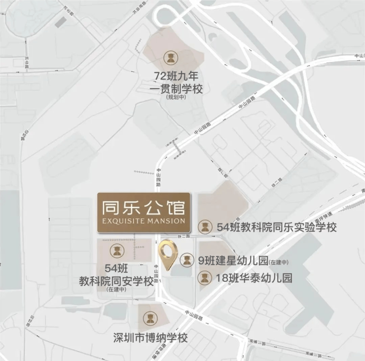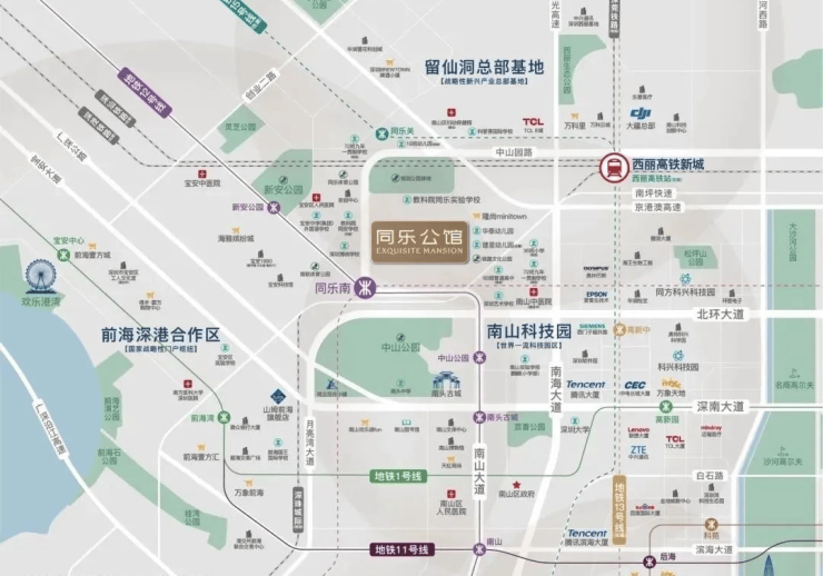 同乐公馆,位于深圳市南山区南头街道同乐片区中山园路东侧,地处南山与宝安交界处,紧邻地铁12号线(在建)同乐南站,步行距离约500米,项目坐拥南山核心区位,毗邻科技园、前海自贸区及留仙洞总部基地,5站可达高新园,辐射粤港澳大湾区核心产业带,具备承接高端人才居住需求的潜力。