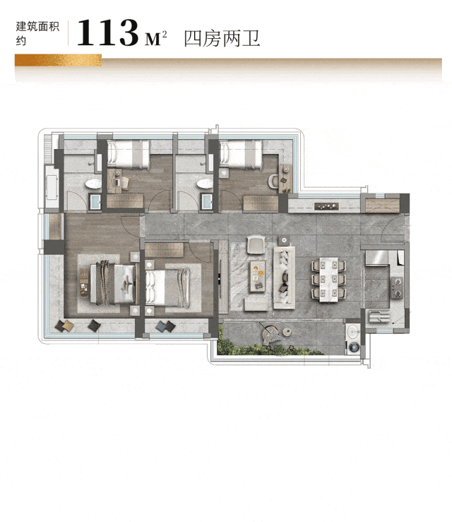 ◎建面约113㎡4房2卫: