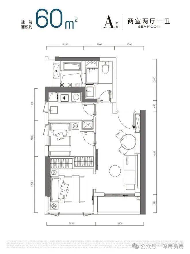 60㎡ | 双面采光两房 | 270°环幕视野