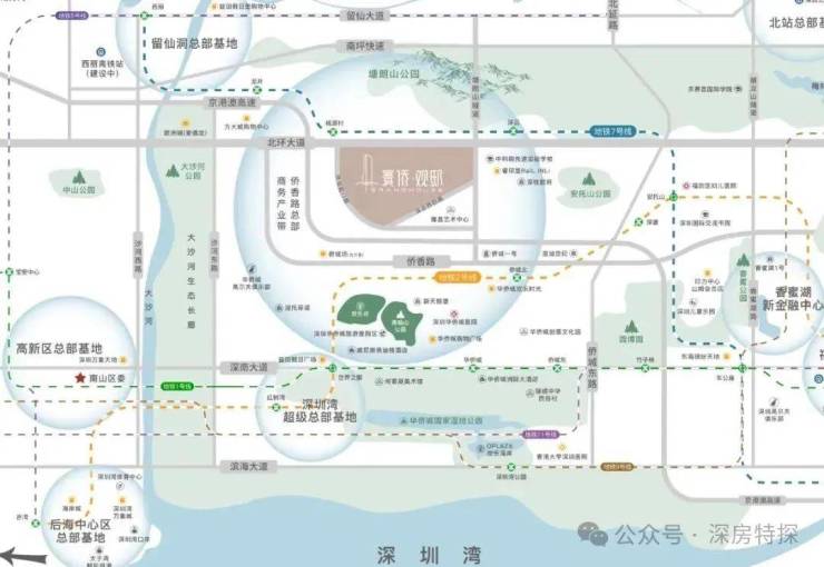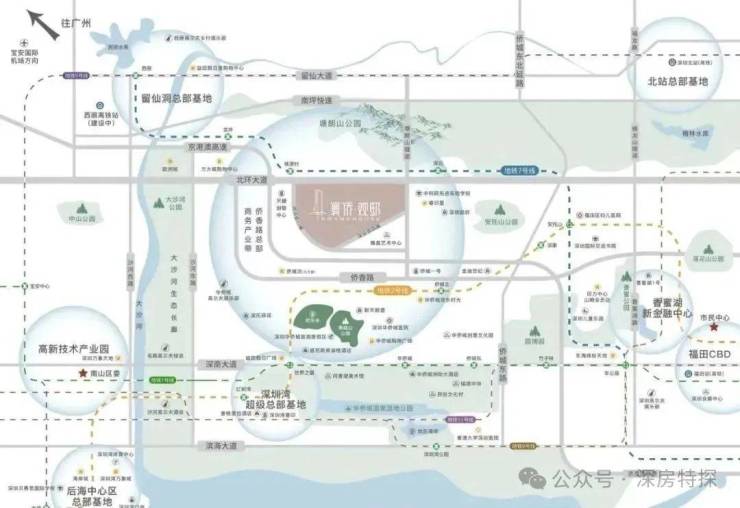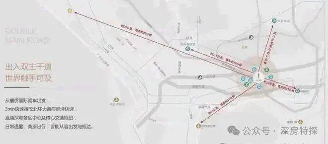 快捷交通路网:北环大道/南坪快速/侨香路/京港澳高速,20-30分钟到福田CBD、深圳北站、皇岗/福田/深圳湾三大口岸、宝安机场等,城芯而居,超享生活。