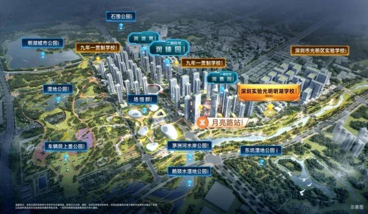 作为建筑面积约320万平方米的光明凤凰城超级生活体,润宏城以“轨道+教育+生态+商业”全维配套及“润”系精工产品兑现“大城生活”承诺。其无缝衔接建设中的地铁13号线月亮路站,二期北延段推动年底通车,9站可达南山科技园;配建幼儿园,深圳实验光明明湖学校(暂定名,预计今年9月开学)、深圳中学光明科学城学校等形成全龄教育圈;近200万㎡城市生态环绕:明湖城市公园、鹅颈水湿地公园、东坑水湿地公园环伺,茅洲河水岸公园(光明段)年底开放,凤凰文体公园及场馆群已立项,构建“公园+文体+商业”复合生活场景。
