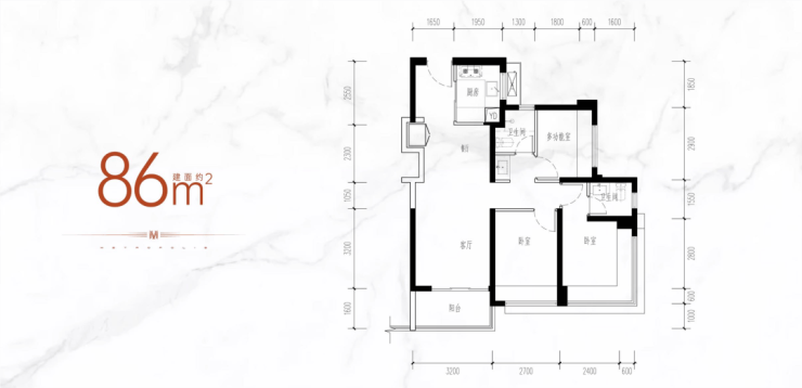 约76㎡三房:小面积低总价,全南向排布,三分离洗手间设计,空间利用率超90%;