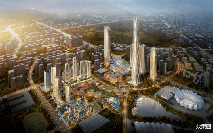 项目由星河集团打造,总占地面积约3.7万㎡,总建筑面积约26万㎡,分两个地块开发,共7栋26-49层高的住宅+1栋公寓组成,总规划1466户,车位1609个,车位占比约1:1.1。