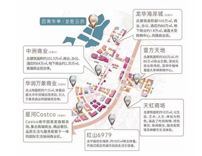 周边深圳最大型商业壹方天地、华南地区Costco(在建中)、红山6979、天虹商场等