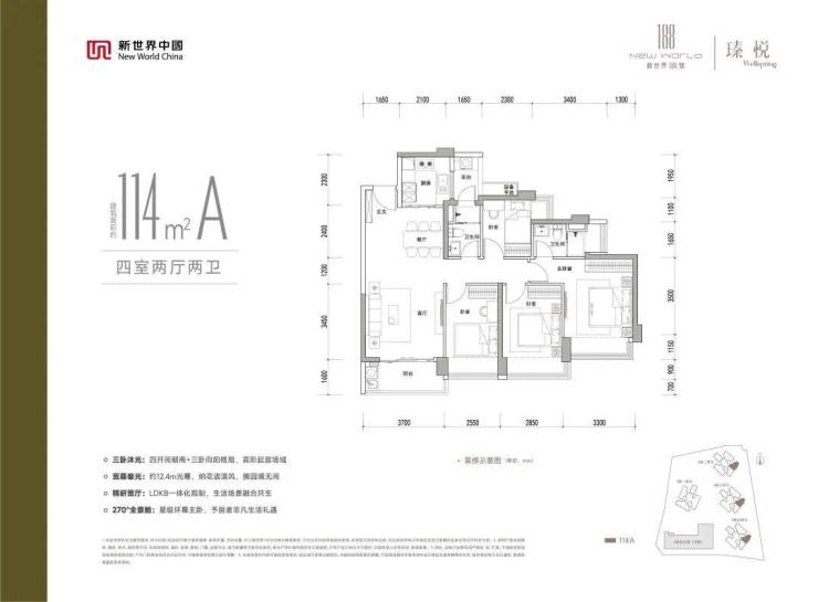 115㎡4房2卫:总价550万起,单价3.06万起/㎡;