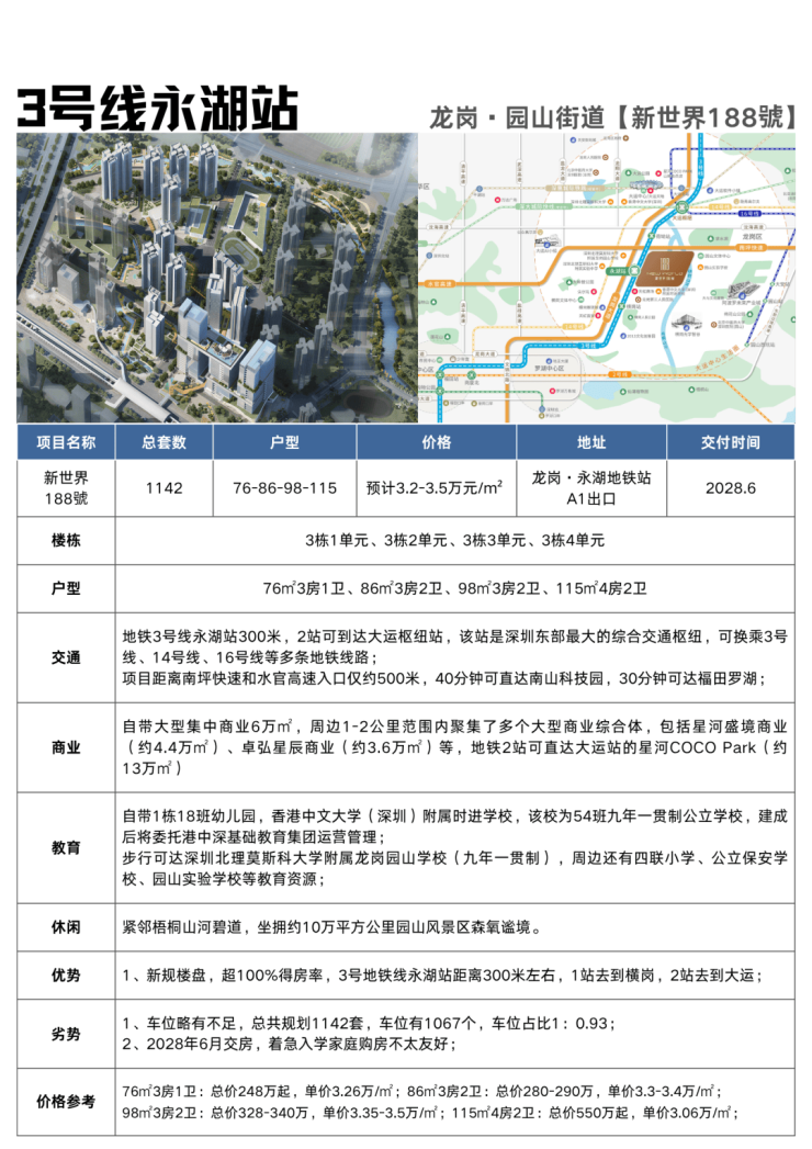 龙岗大运新城板块,新世界188號,涵盖高端住宅、保障房、大型商业、写字楼、学校、幼儿园为一体的综合体大盘。