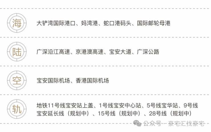 1号线宝安站上盖,3地铁+3高速+4港口+国际机场构建立体交通;壹方城、欢乐港湾等商业,深圳滨海艺术中心等人文配套,18公顷生态绿肺环伺,千亿资源现成即享。