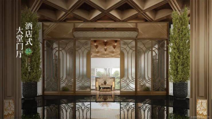 5栋16-25层建筑,勾勒出低密宜居的人文美学之地。超尺度门庭,引领归家的气度。宽度近51米恢弘门头、酒店式大堂,融入20根7米香槟金立柱,敬呈宝格丽演店般的客华感与仪式感。