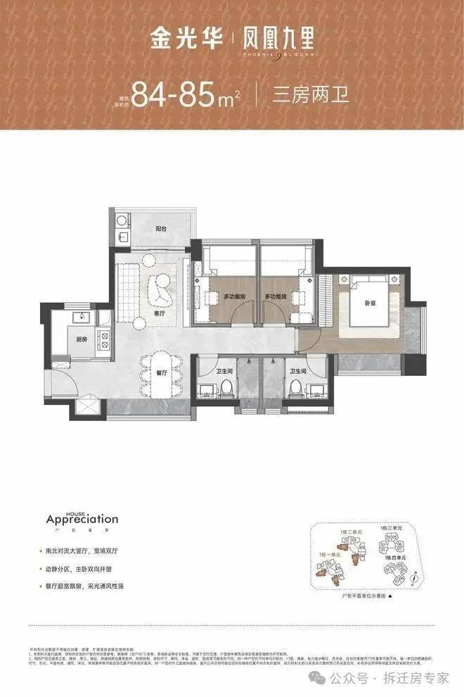 龙岗平湖新楼盘金光华凤凰九里·慧苑开盘首推1栋1/3单元,共430套房源,面积68㎡的2房1卫,83-85㎡的3房2卫,106㎡的4房2卫户型。