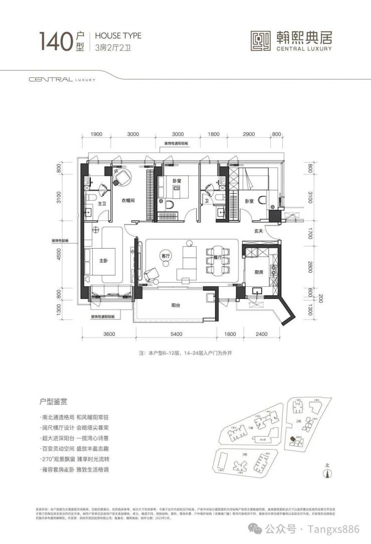 105㎡,3房2卫,参考折后总价区间约1000-1200万