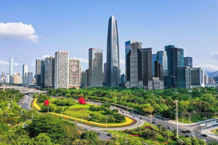 大百汇广场,设计灵感来自于深圳市的市花——簕杜鹃。流线型的建筑外观,修长的纺锤形态,无柱弧形转角,为大厦提供了出色的视野。