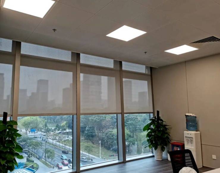 大百汇大厦建筑外立面选用LOW-E玻璃幕墙,可有效隔音,营造安静的办公环境,玻璃幕墙搭配创明电动卷帘,保证室内通透视野的同时,也能有效阻隔窗外紫外线辐射,绿色节能,遮阳透景,打造出静谧美好的办公环境,延续空间的明亮与通透感。