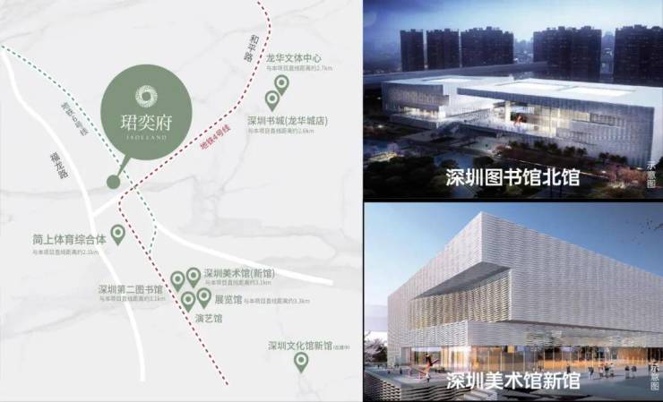 项目楼下自带约2.3万㎡公共园林空间;周边还有深圳美术馆新馆、深圳第二图书馆、展览馆演艺馆、简上体育馆、深圳书城(龙华城)等市政配套