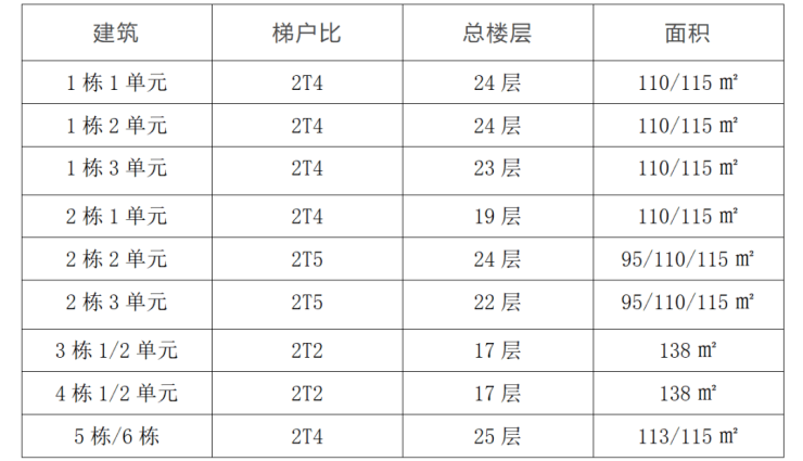 梯户比:2T2、2T4、2T5户