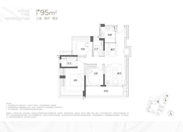95㎡3房2卫