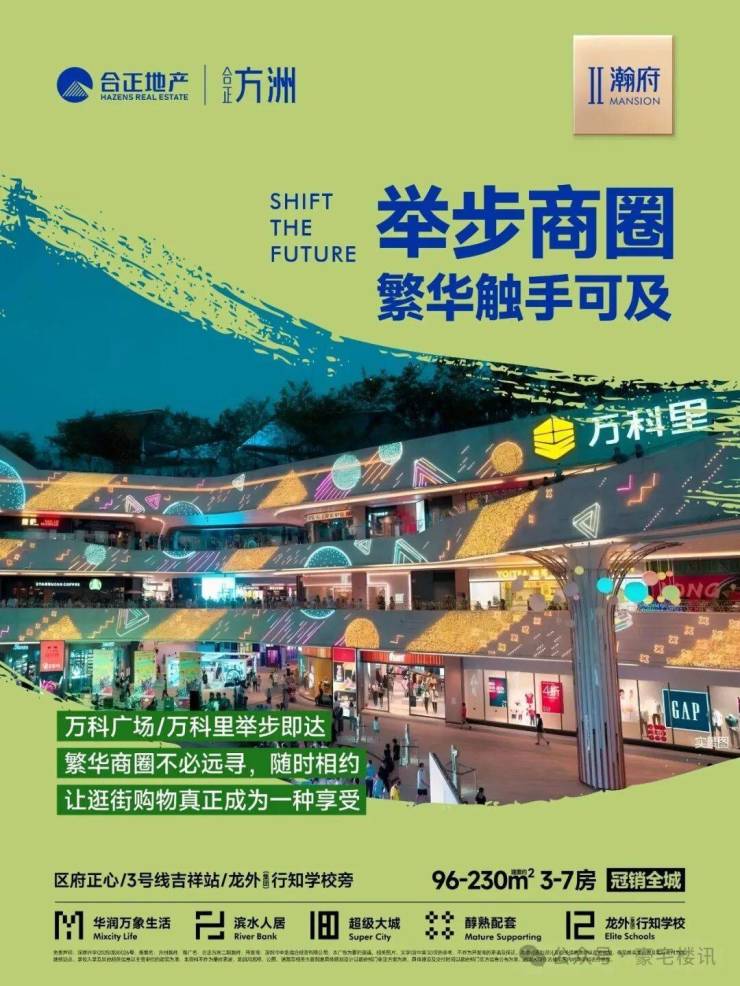 合正方洲由合正集团打造,总占地面积约22万㎡,总建筑面积超180万㎡,共分4期开发,该项目前面1期为合正方州润园及合正方州泓园均已经售罄,另外合正方州雅居是公租房,这次要推售的是二期项目——合正方州瀚府。