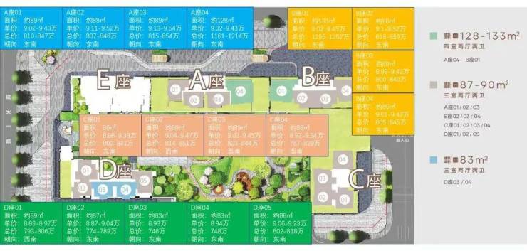 🔻面积:89㎡3房1卫。89㎡3房2卫,128-133㎡4房2卫,