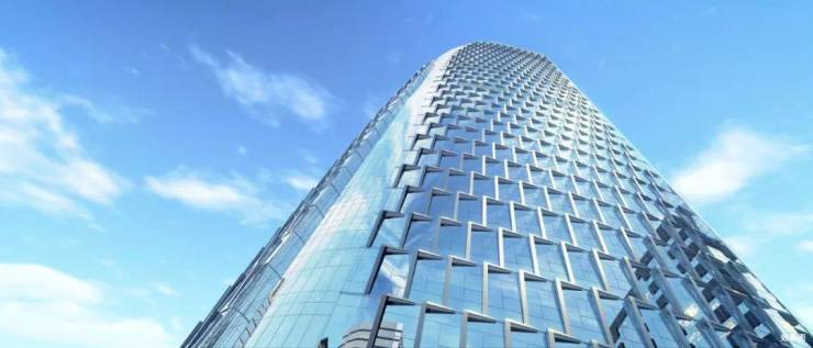 整个外立面通过设计手法切割,呈风帆的造型,寓意企业一帆风顺;玻璃幕墙采用6+12A+6MM双层中空LOW-E玻璃,有隔热隔音防辐射的功能,最大程度节能保温。