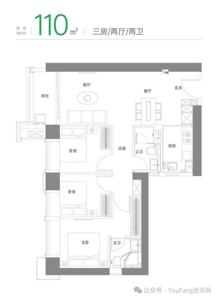 建筑面积约110㎡户型