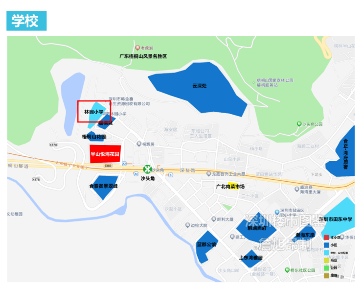 周边距离730米有广北肉菜市场(深圳市盐田区政府采购中心西北),距离2.1公里外还有和亨城市广场。