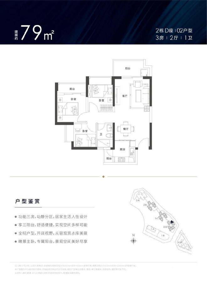 79-126㎡3-4房,满足不同人居需求,以人为本设计,户型方正、格局合理、全明设计、通透采光俱佳,引清风入室;高层瞰景,享受山水佳境与城市繁华融合的多维景观视野。