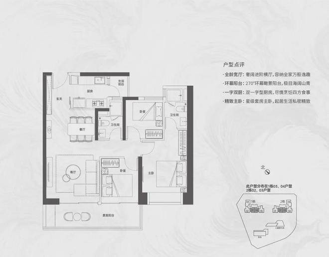 【124㎡的3+1房2厅2卫】1栋02/2栋04户型,电梯入户送独立公区,设计的是竖厅格局,动静分区,主卧套间设计,还有一个多功能间可以做书房,U型厨房,公卫三段式分离,得房率:72.07%(不含赠送)西南朝向;
