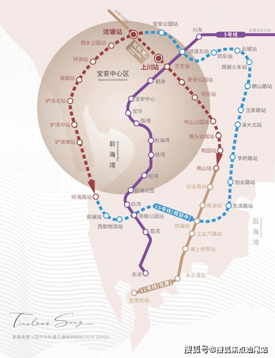 项目紧临深圳首条跨海地铁线15号线流塘站,南北串通宝安及前海,真正链接宝安及大铲湾,4站可达企鹅岛。(15号线被称为“前海超级黄金圈”,起点大铲湾岛,连接宝安、,安、西丽高铁枢纽、南山科技园、后海,前海,再回到大铲湾岛,设置22个站点,形成长达30公里的闭环,所到之处均为深圳重点规划区域。)
