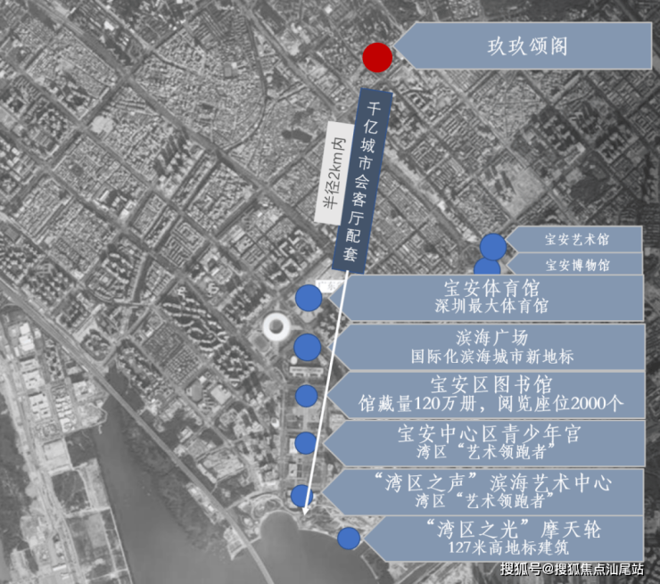 2km范围内悦享千亿大湾区会客厅配套:包括现在已经在运营的“湾区之光”地标摩天轮、欢乐海港、滨海文化公园、宝安体育场、图书馆、青少年宫、演艺中心等。