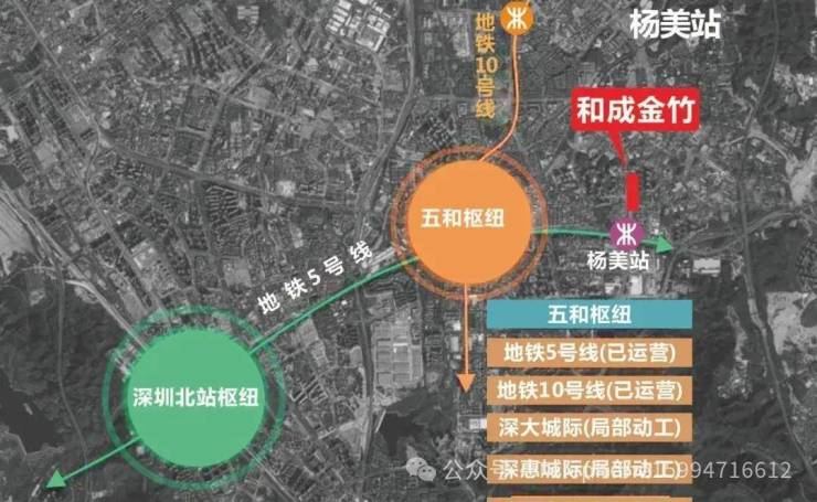 交通配套:和成金竹家园的交通优势十分明显。项目距离5号线杨美站约200米,可快速直抵罗湖、宝安、前海片区。2站即可到达五和枢纽站,可换乘10号线/深大城际,4站到布吉枢纽站可换乘3/14号线,4站到深圳北站可换乘4/6号线,还有高铁线路。此外,项目周边还有在建中的地铁25号线和27号线,预计2028年通车,未来交通将更加便捷。
