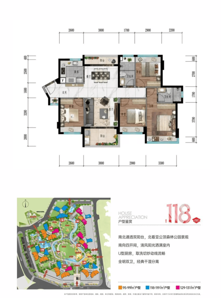 2️⃣118㎡南北通双阳户型四房两厅两卫