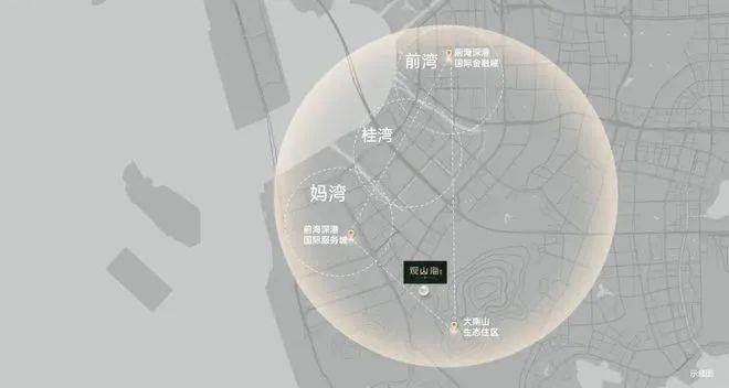 观山海家园在5号线荔湾站周边,位于深圳市南山区沿山路荔山东北侧,项目在前海合作区内,享受前海政策规划利好,毗邻大南山,靠近妈湾片区,观山海家园位于前海片区“三湾两城一山”中的大南山生态住区,与桂湾国际金融城和妈湾前海深港国际服务城两大前海核心区引擎,形成前海黄金三角
