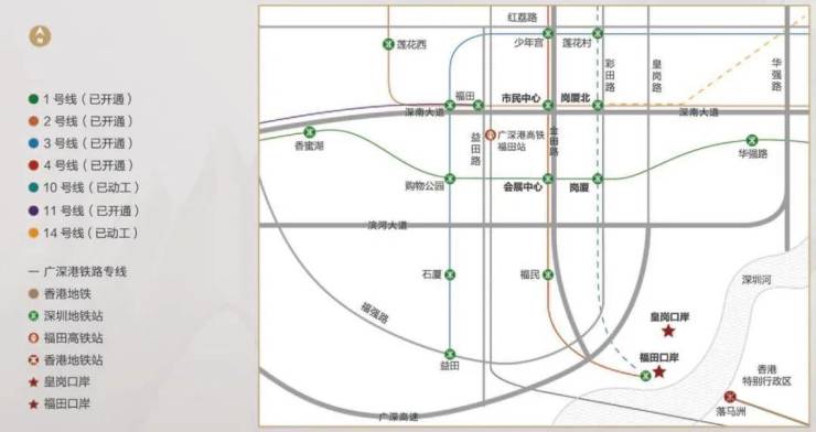 9大功能中心,拥有国际都会生活圈的城市配套(全深圳80%的金融机构,莲花山、深圳图书馆、音乐厅、书城、博物馆、少年宫、当代艺术中心、关山月美术馆等富有深圳文化的涵养之地;更囊括了全深圳60%五星级酒店、5家超级shopping mall等城市配套;商务、购物、娱乐、休憩、居住随意切换)。