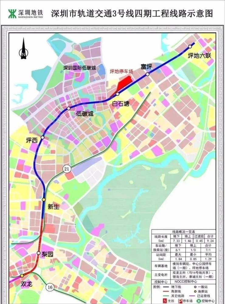 这期工程自3号线既有双龙站,沿线设站梨园、新生、坪西、低碳城、白石塘、富坪,至坪地六联站,预计2025年通车。