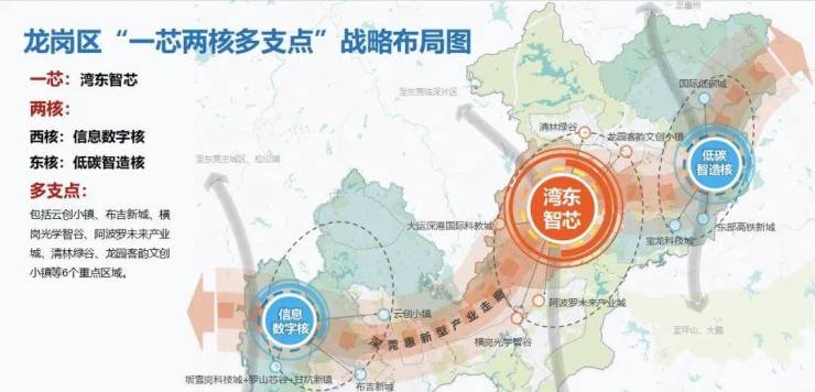 ▲龙岗区“一芯两核多支点”发展战略布局图
