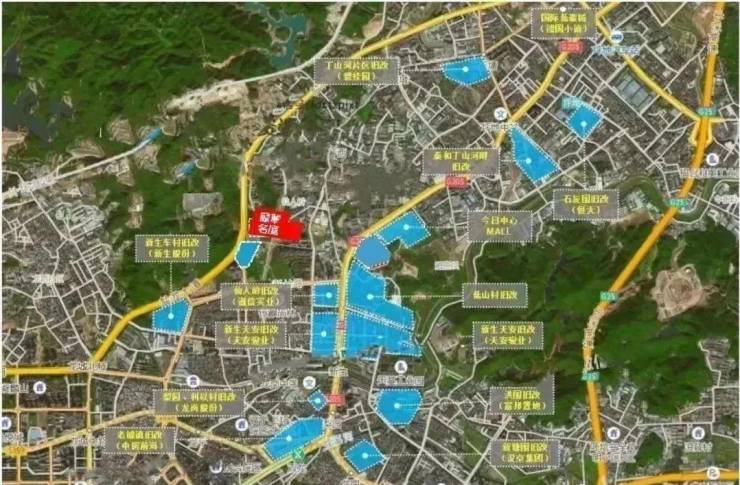 据不完全统计,项目周边还有新生天安旧改、低山村旧改、仙人岭旧改等项目扎堆,体量超400万㎡,华侨城、豪方等品牌房企早已进驻。