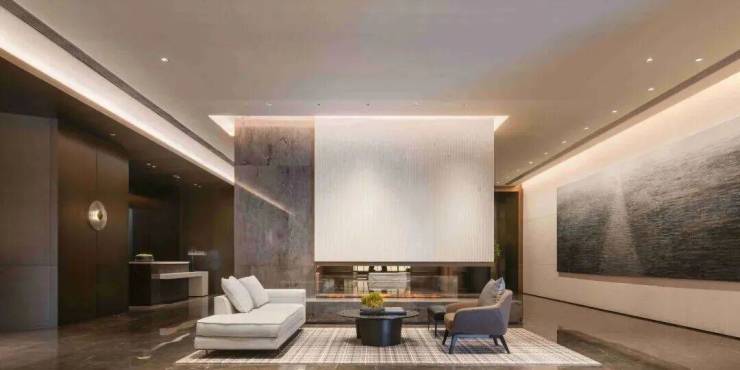 顶奢酒店式入户大堂,石材铺装,打造尊崇的三重归家礼序,开敞阔绰奢豪,点缀多元艺术美陈。