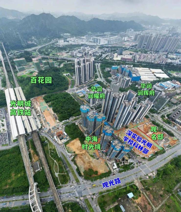 光明城高铁站,也是广深港高铁线和赣深高铁进入深圳的第一站,周边还邻近观光路,光侨路,深圳外环高速,龙大高速等主要交通要道。