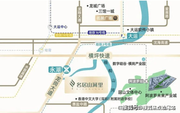 名居山河里项目位于深圳市龙岗横岗中心区,紧邻永湖地铁站A口南侧约200米,是名居地产深耕鹏城后打造的又一高端住宅项目。项目总占地约6.4万㎡,总建面约48万㎡,规划有住宅、商业等多元业态,致力于打造集居住、购物、休闲于一体的品质生活社区。