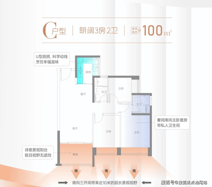 (3)U型大厨房,大客/餐厅,大阳台!(4)推门见山,辽阔视野!