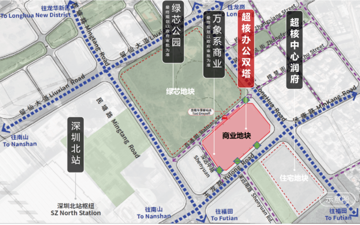 项目由华润置地与深铁置业联袂开发,位于深圳北站总部基地核芯区,建面约75万㎡的城市综合体,涵盖绿芯公园、万象系商业、地标办公、润府住宅等多元业态,未来将成为一个国际化产城新范本。