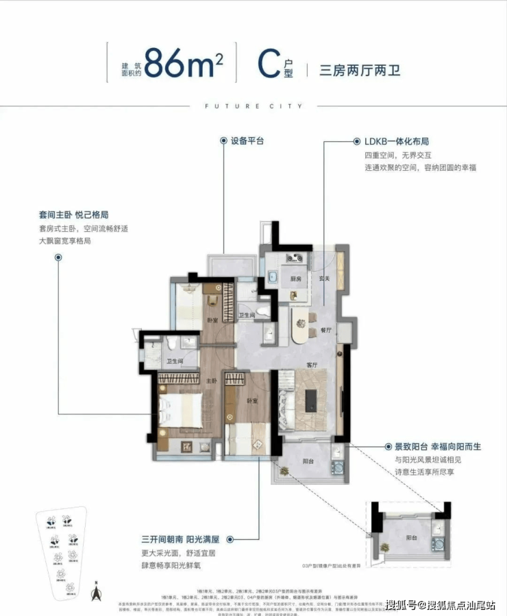 户型:建面约63㎡两房一卫/约76㎡三房一卫/约86㎡三房两卫/约112㎡四房两卫