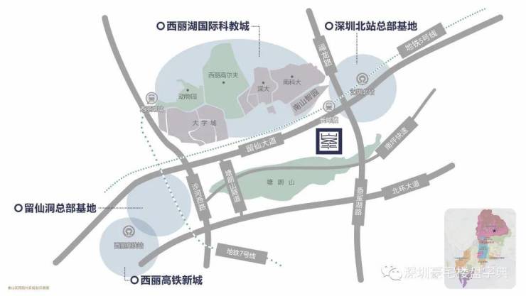 西丽:深圳六大总部基地,南山独占四个,南山大学城,西有留仙洞总部基地,东有深圳北站总部基地。南山向北,打造“中国硅谷”的三大核心引擎尽在西丽,西丽将成深圳科创&人文双高地。
