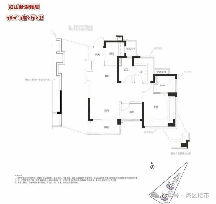 龙华红山,联发新澍雅居预计2026年一季度取证入市,户型相当炸裂,面积有69平的2+1房1卫,79-82平的3房2卫,99平的4房2卫户型,共332套房源,价格方面可以参考附近前期入市的联发臻著雅居,备案均价7.3万/㎡,当时折后均价约6.4万/平,期房精装交付,目前营销中心暂未开放,户型图供参考