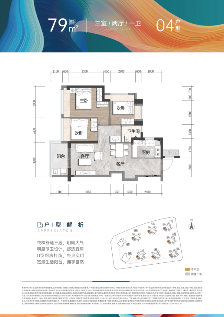 建面约79㎡ 3房2厅1卫:南北通透3房,功能分区合理,全凸窗设计,三分离卫生间