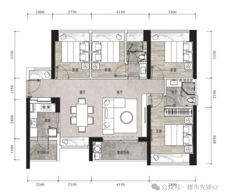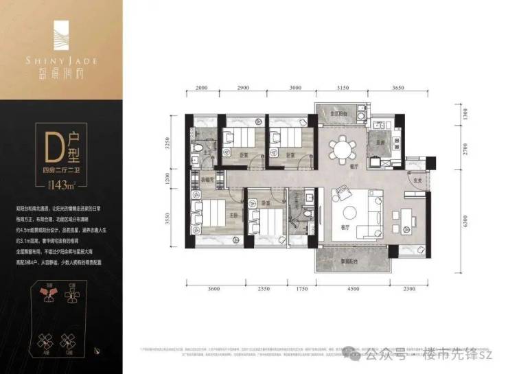 🟤舒阔4房 建面约143㎡4房2厅2卫