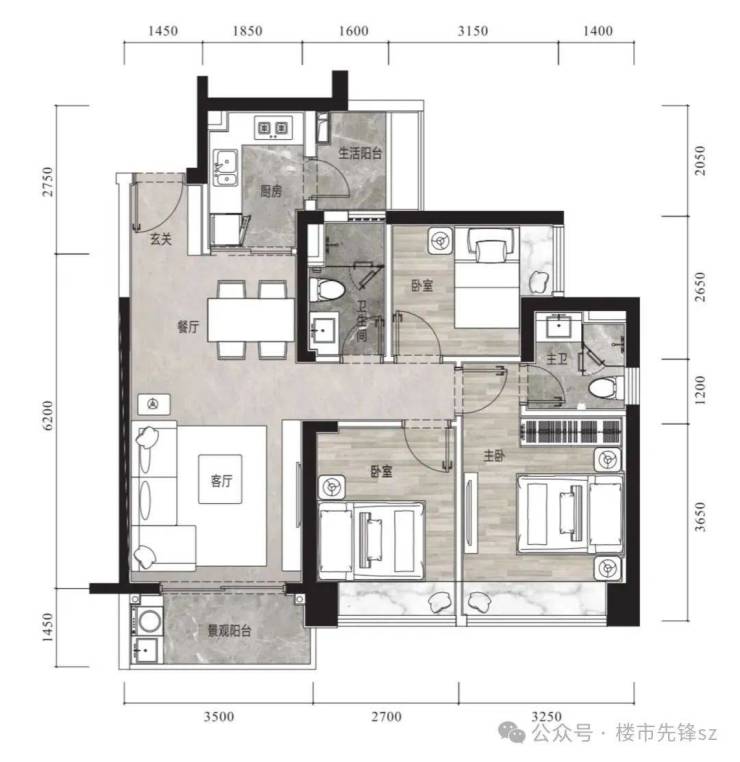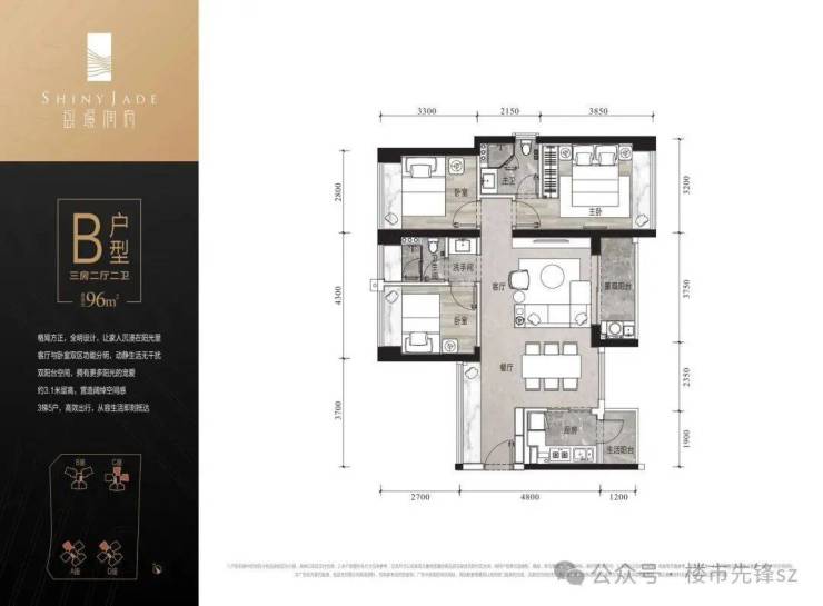 🟤横厅3房 建面约96㎡3房2厅2卫