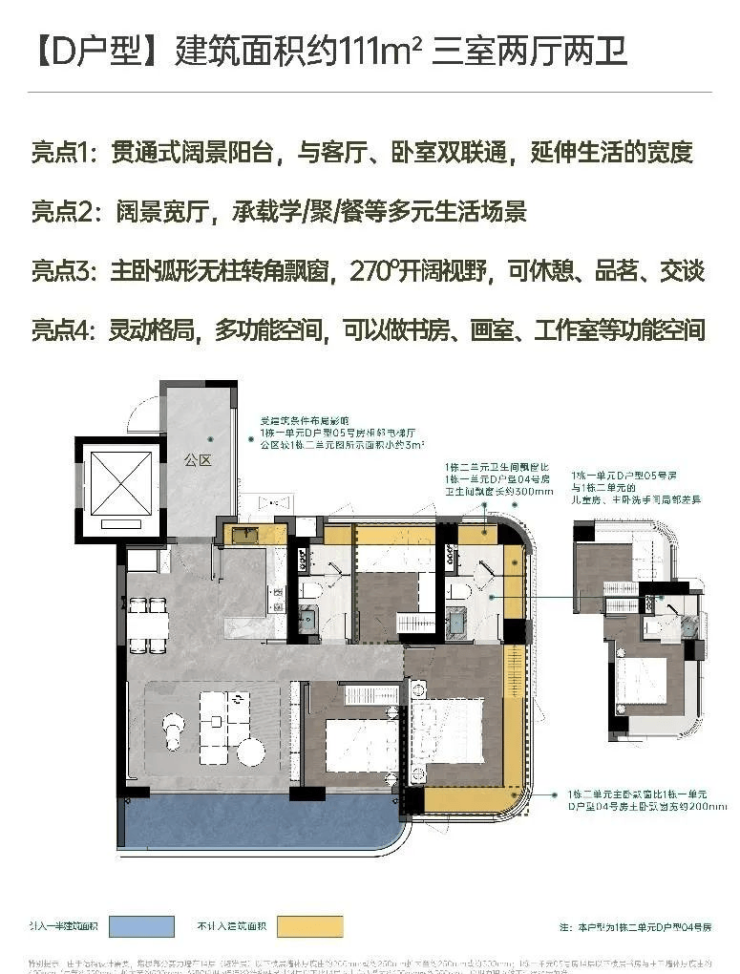 建面约111㎡宽厅阔景 灵动三房;