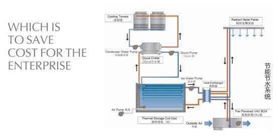 智慧办公为企业带来的不仅仅是效率,更是效益:为了使办公变得更加节能高效,时代广场采用冰蓄冷系统配合基载主机系统联合供冷,蓄冰设备采用塑料盘管蓄冰槽,末端采用变风量空调系统(Variable Air Volume System, VAV系统),可根据室内负荷变化或室内要求参数的变化,自动调节空调系统送风量。既能满足全天候供冷,又能实现分户计量,有效改善系统利用率,降低空调运行费用30%-40% 。