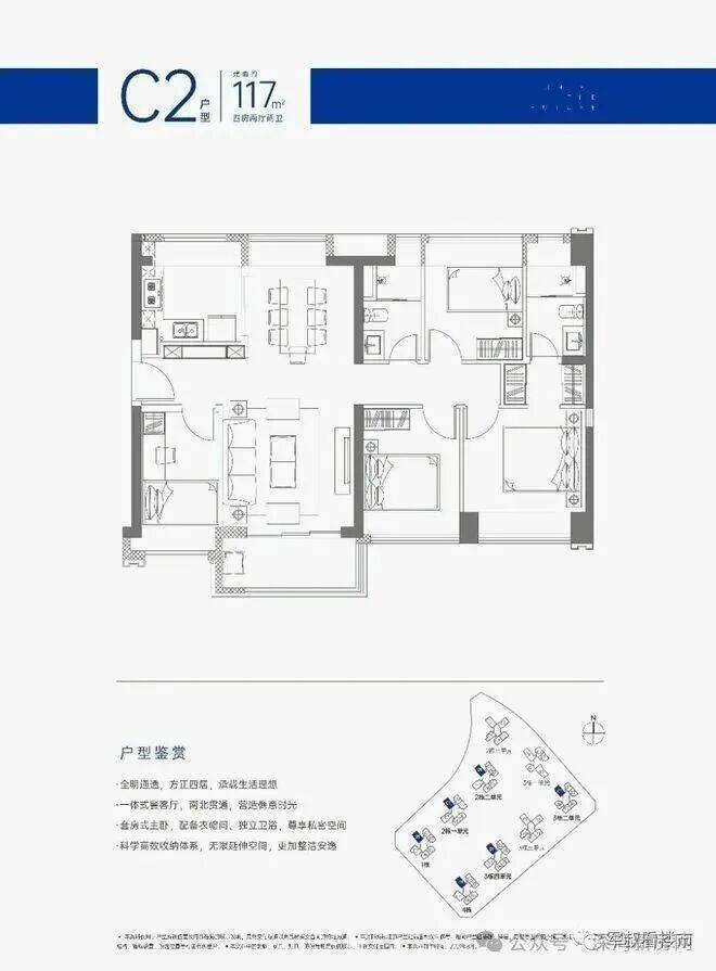 龙岗中心城「合正方洲2期·瀚府」计划将在2025年12月份取证入市,本次将会首推2栋2单元,共256套房源,面积有96-98㎡的3房2卫,114-116-137㎡的4房2卫户型。