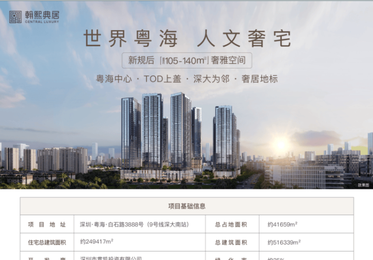 翰熙典居,逾50万㎡地标级奢居综合体,2025年深圳市重大建设项目之一。项目三个地块一次性整体开发,彰显枫叶集团雄厚实力,及打造中心人文奢宅、城市地标之作的恢弘之志。